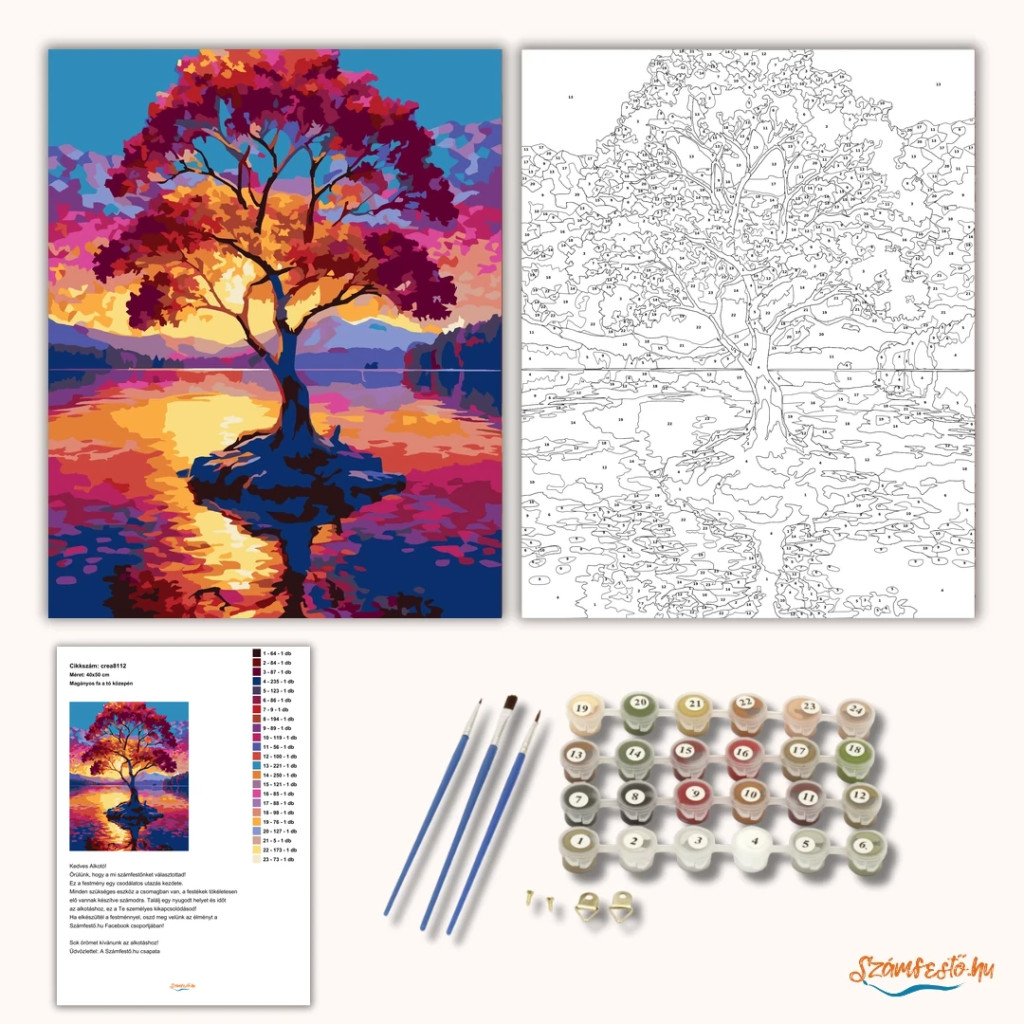 Magányos fa a tó közepén - számfestő készlet - Számfestő.hu - 40×50cm - Keret nélkül