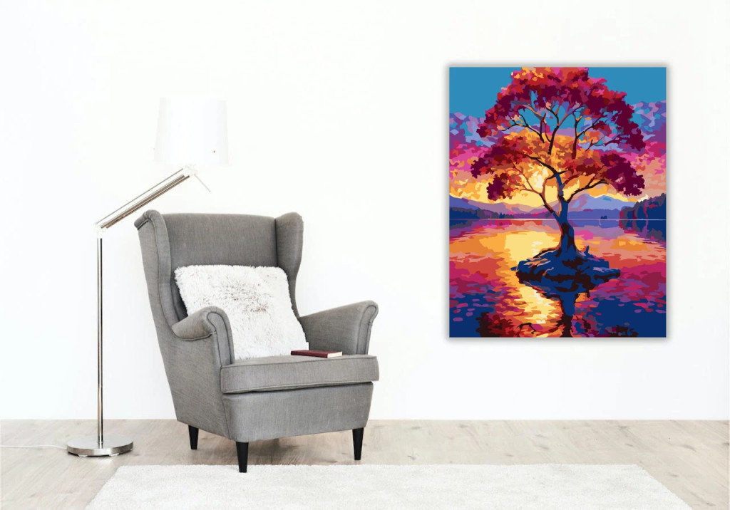 Magányos fa a tó közepén - számfestő készlet – 40×50 cm (Keret nélkül)