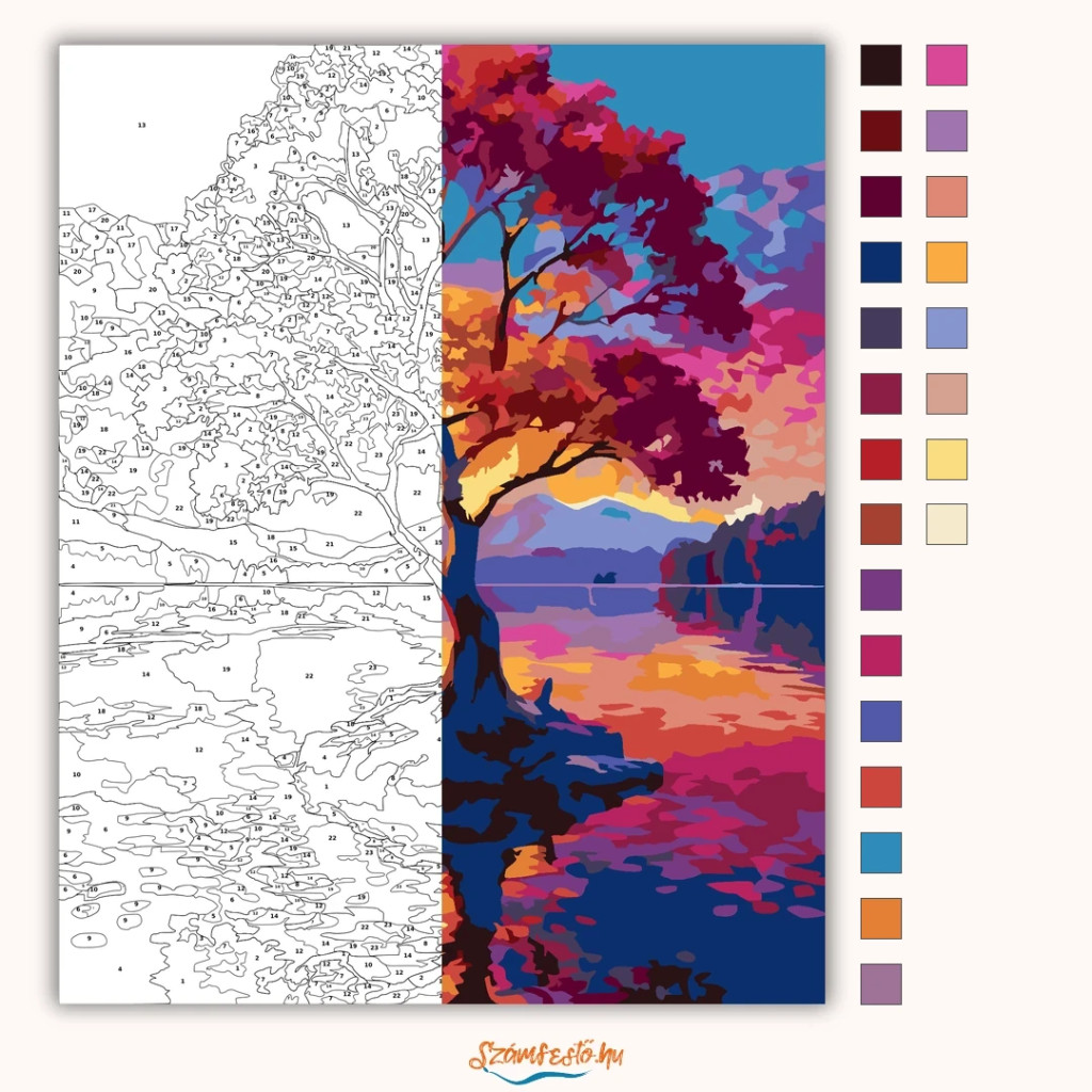 Magányos fa a tó közepén - számfestő készlet - Számfestő.hu - 60×70cm - Keret nélkül