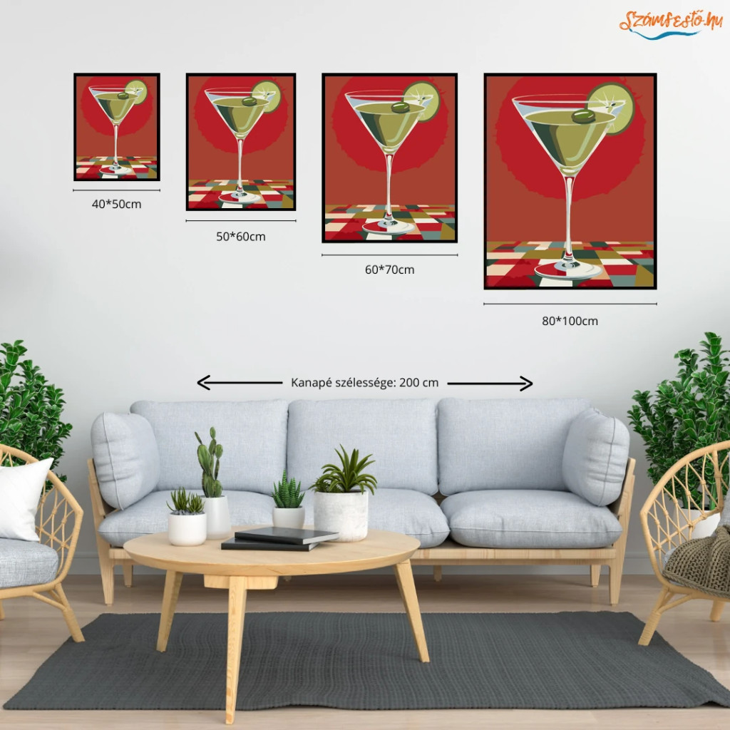 Martinis pohár - számfestő készlet - Számfestő.hu - 60×70cm - Keretre feszítve