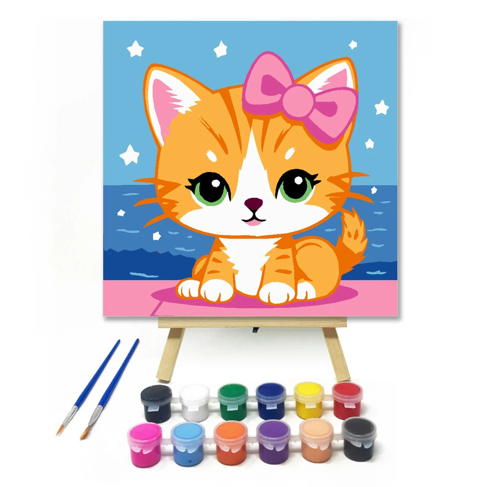 Masnis kiscica - gyerek számfestő készlet – 30×30 cm (Keretre feszítve)