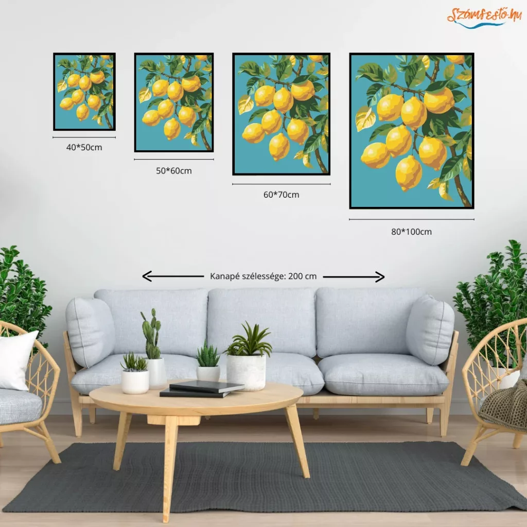 Mediterrán citromág - számfestő készlet – 50×60 cm (Keretre feszítve)