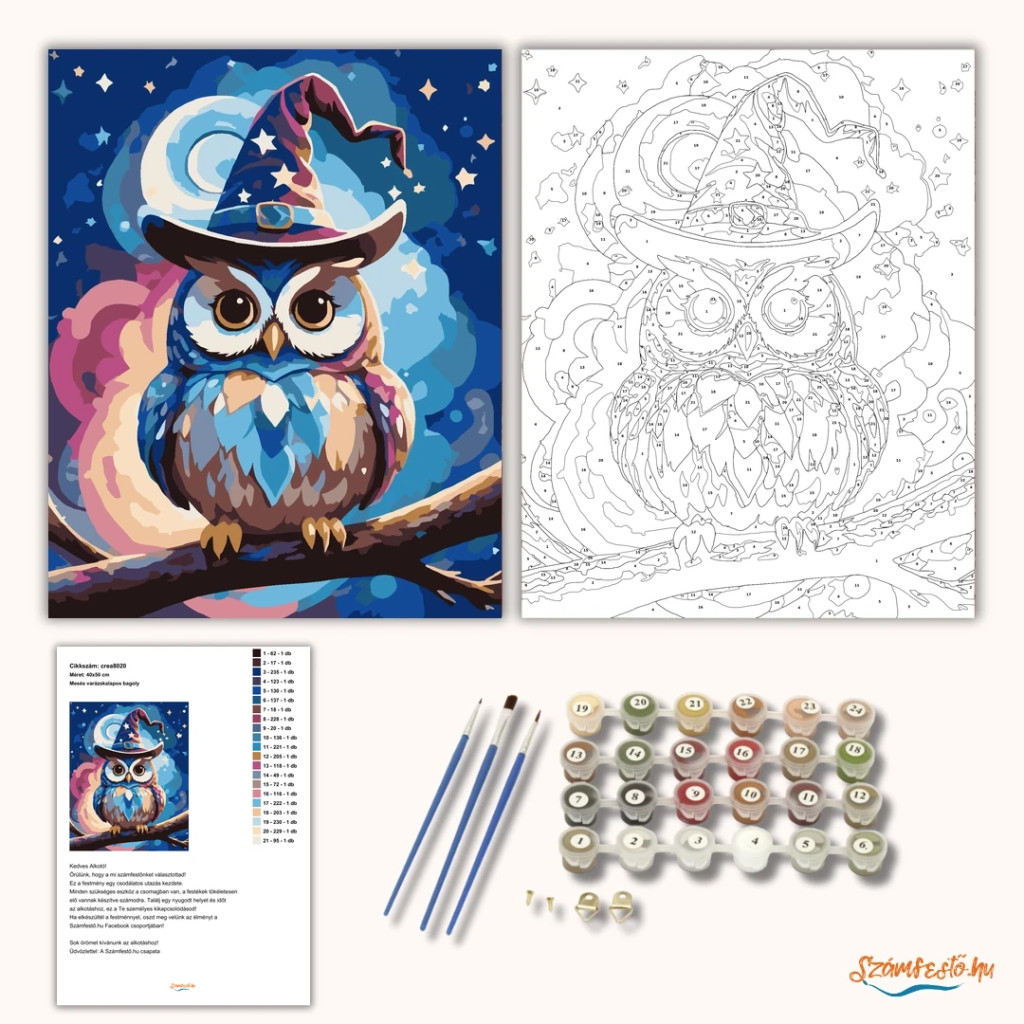 Számfestő készlet - Mesés varázskalapos bagoly