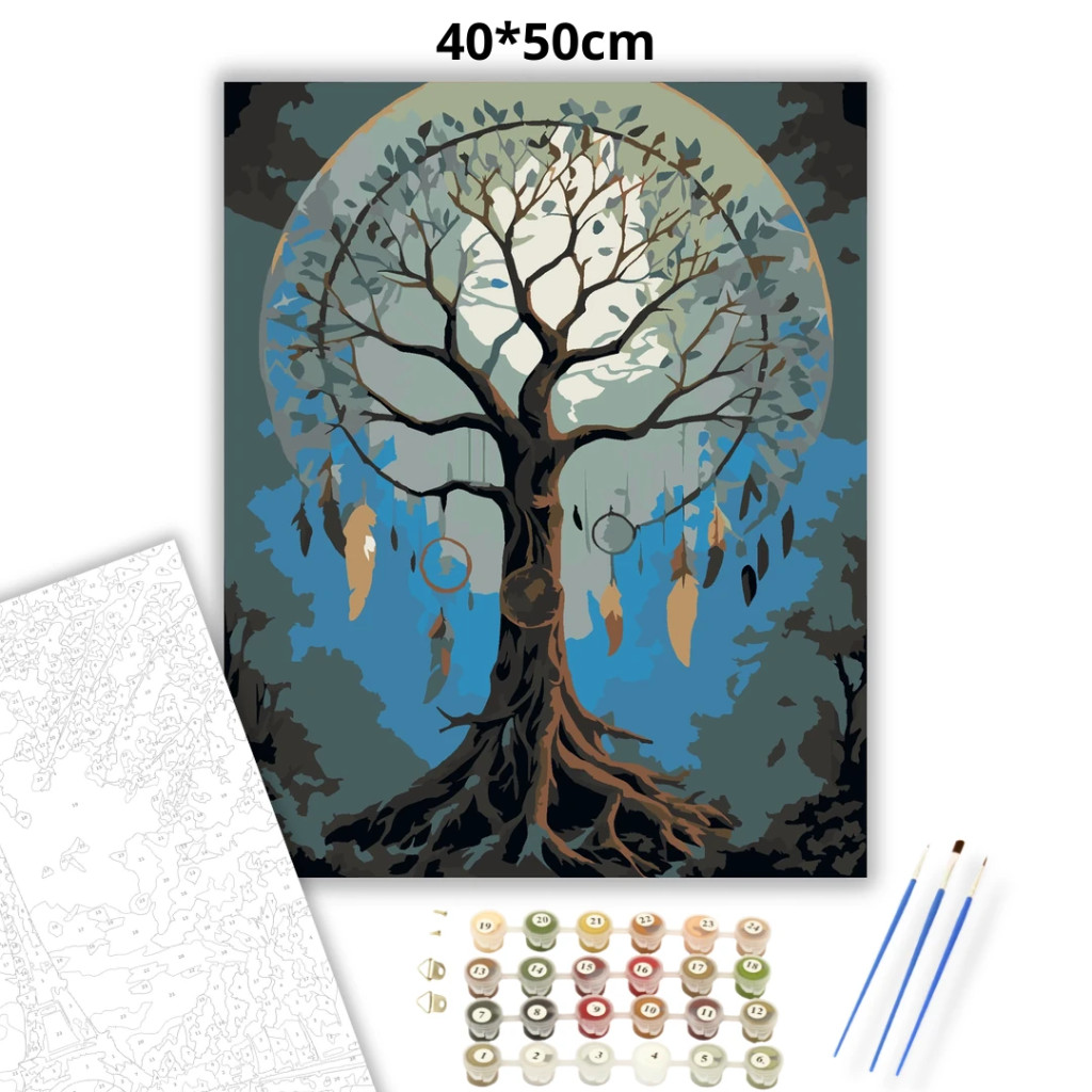 Misztikus álomfogó fa - számfestő készlet – 40×50 cm (Keret nélkül)