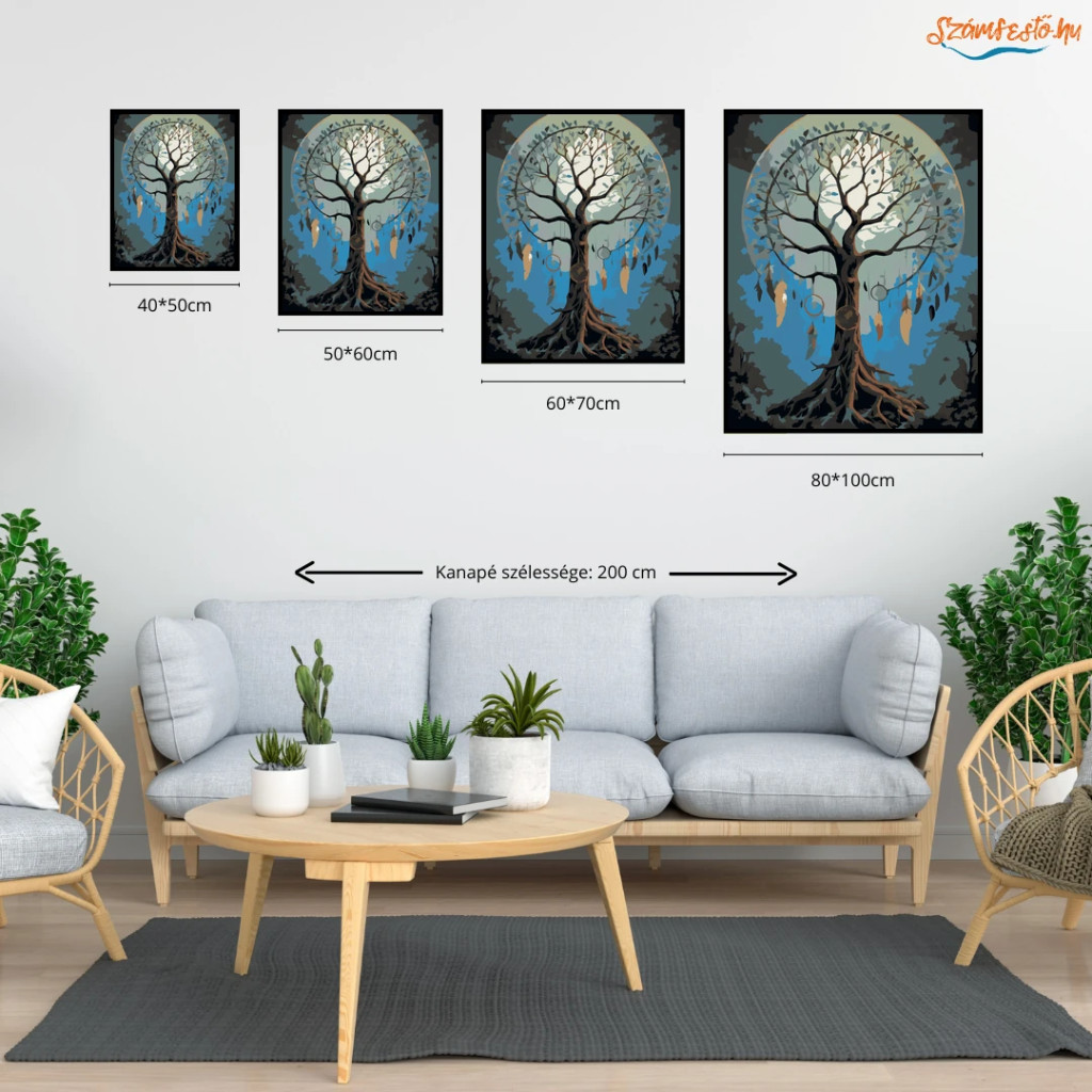 Misztikus álomfogó fa - számfestő készlet - Számfestő.hu - 40×50cm - Keret nélkül