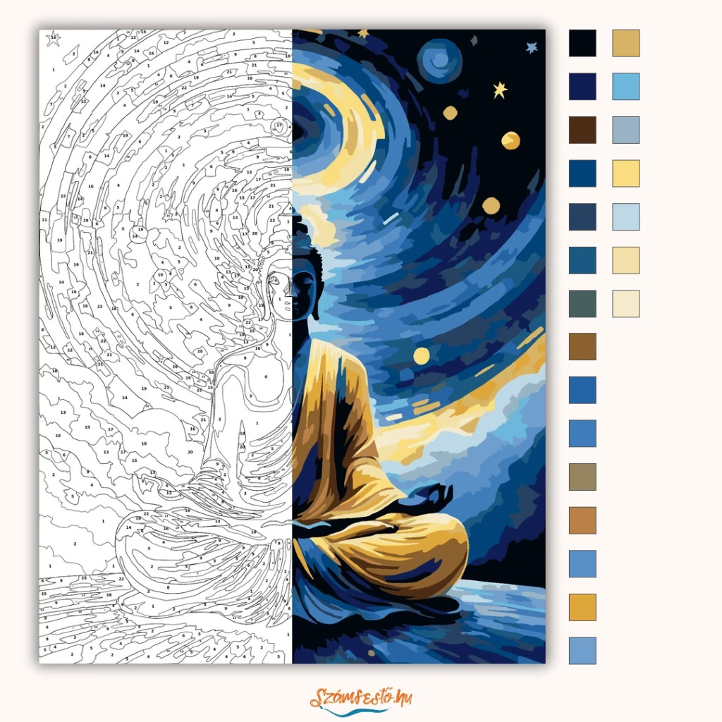 Misztikus Buddha a csillagok alatt - számfestő készlet – 60×70 cm (Keretre feszítve)