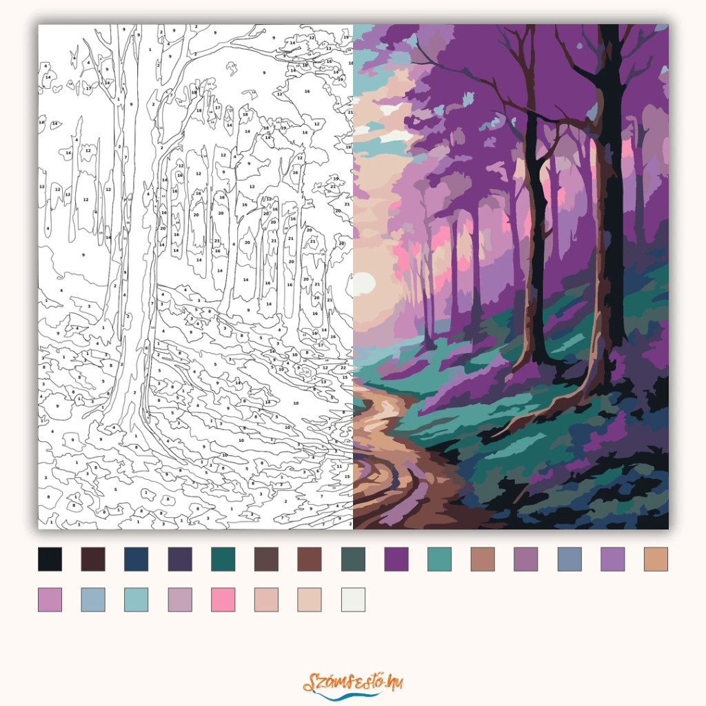 Misztikus erdei ösvény - számfestő készlet – 60×70 cm (Keretre feszítve)