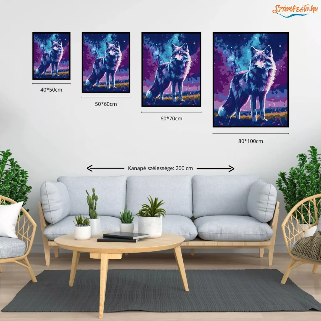 Misztikus farkas tekintete - számfestő készlet - Számfestő.hu - 60×70cm - Keretre feszítve