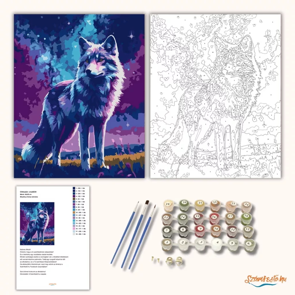 Misztikus farkas tekintete - számfestő készlet - Számfestő.hu - 80×100cm - Keretre feszítve