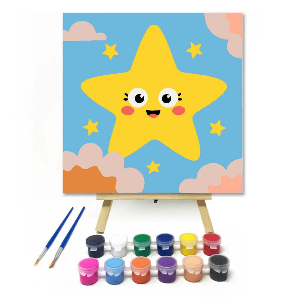 Mosolygós csillag - gyerek számfestő készlet – 40×40 cm (Keret nélkül)