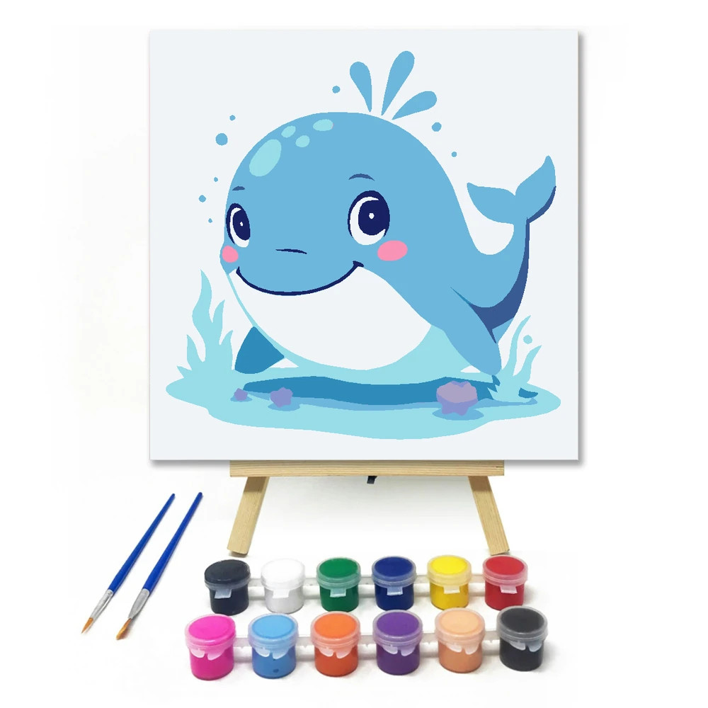 Mosolygós kis bálna - gyerek számfestő készlet – 30×30 cm (Keretre feszítve)