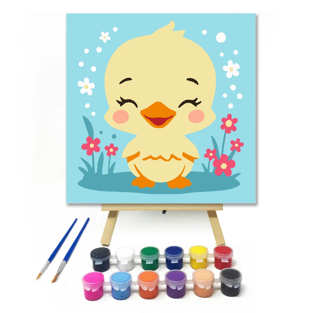 Mosolygós kiskacsa - gyerek számfestő készlet - Számfestő.hu - 20×20cm - Keret nélkül