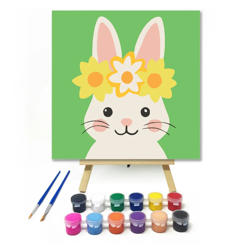 Mosolygós nyuszi koszorúban - gyerek számfestő készlet