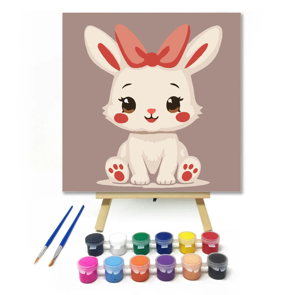 Mosolygós nyuszi masnija - gyerek számfestő készlet - Számfestő.hu - 30×30cm - Keret nélkül