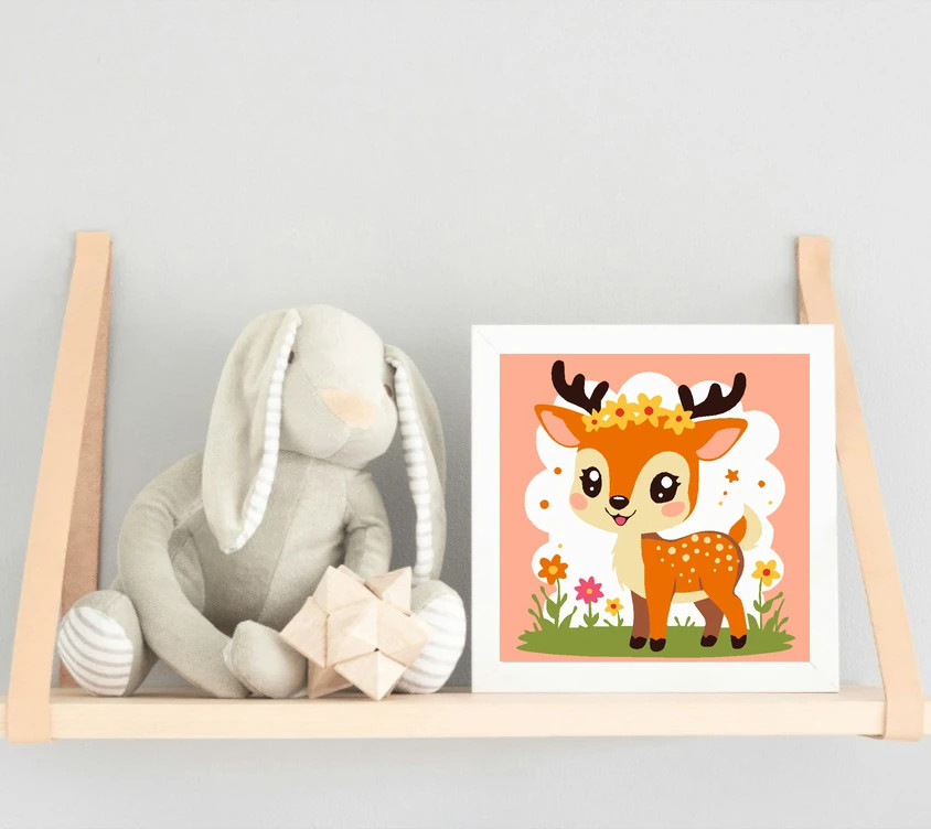 Mosolygós őzike - gyerek számfestő készlet - Számfestő.hu - 40×40cm - Keret nélkül