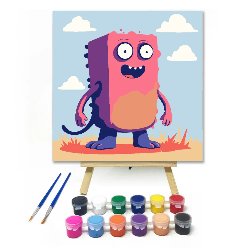 Mosolygós szörnyike - gyerek számfestő készlet – 20×20 cm (Keretre feszítve)