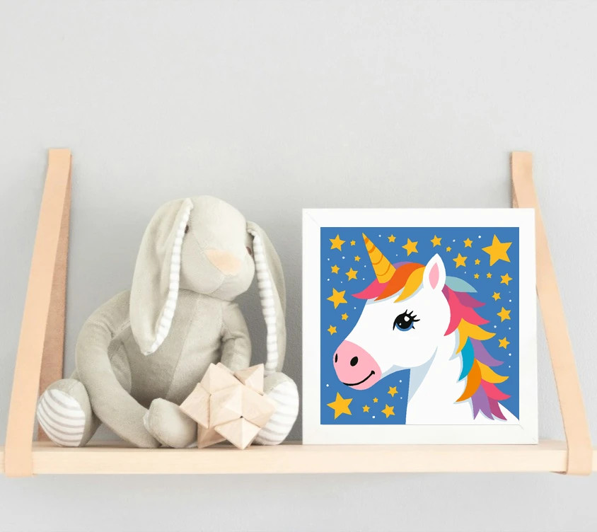 Mosolygós unikornis csillagai - gyerek számfestő készlet - Számfestő.hu - 20×20cm - Keret nélkül