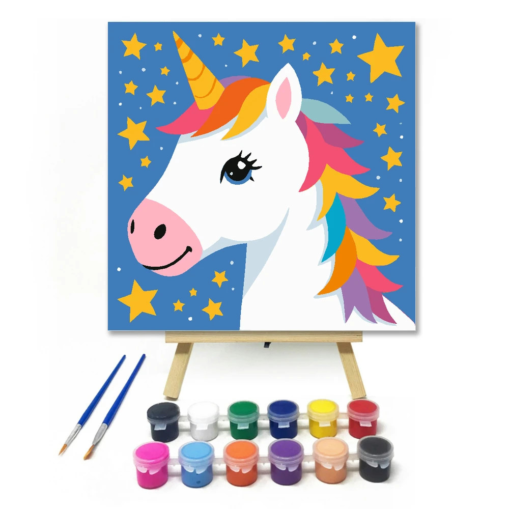 Mosolygós unikornis csillagai - gyerek számfestő készlet