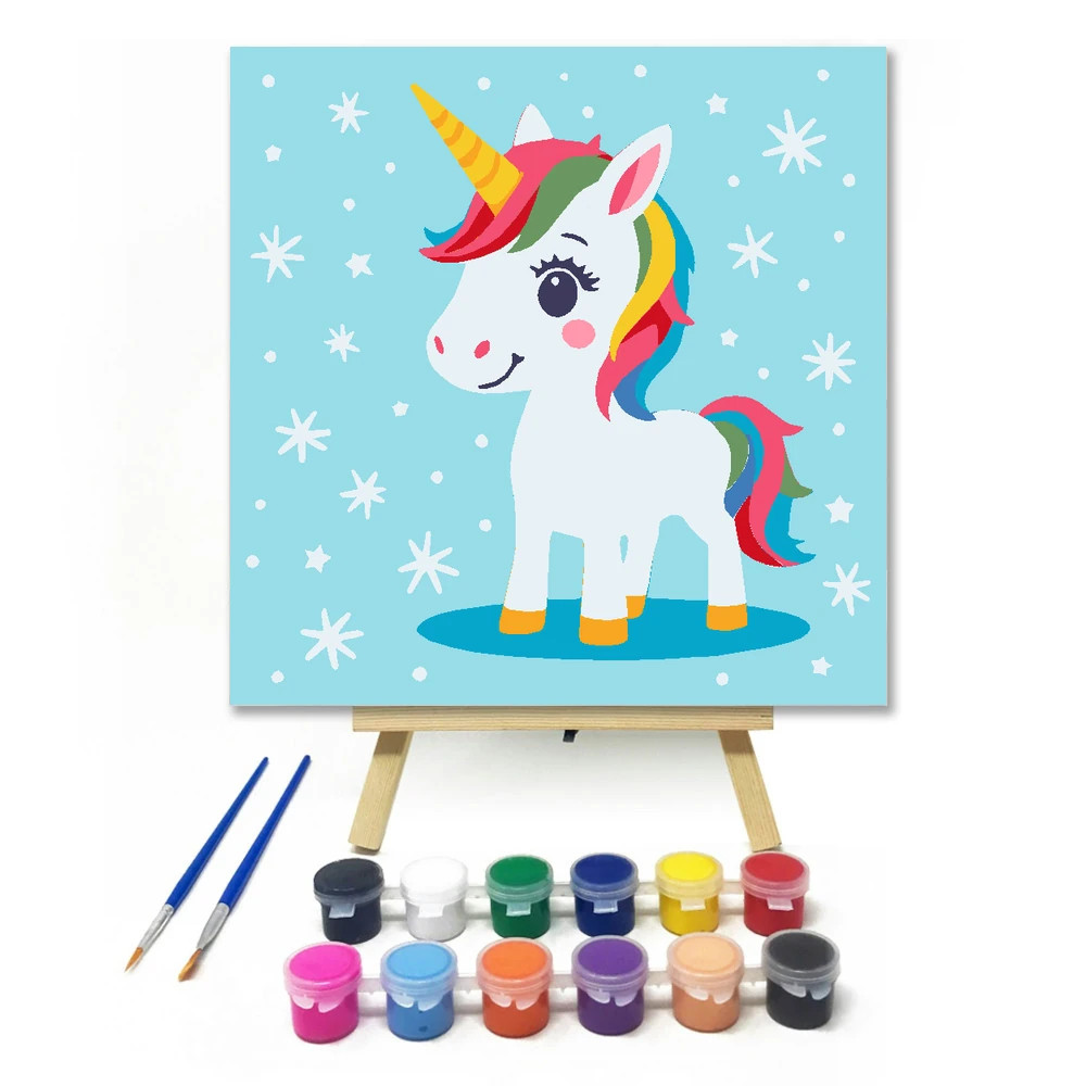 Mosolygós unikornis - gyerek számfestő készlet – 20×20 cm (Keret nélkül)
