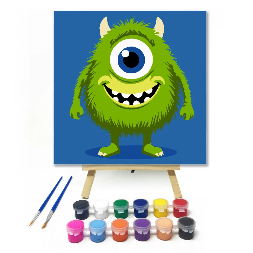 Mosolygós zöld szörnyike - gyerek számfestő készlet – 50×50 cm (Keret nélkül)