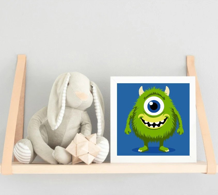 Mosolygós zöld szörnyike - gyerek számfestő készlet - Számfestő.hu - 50×50cm - Keret nélkül