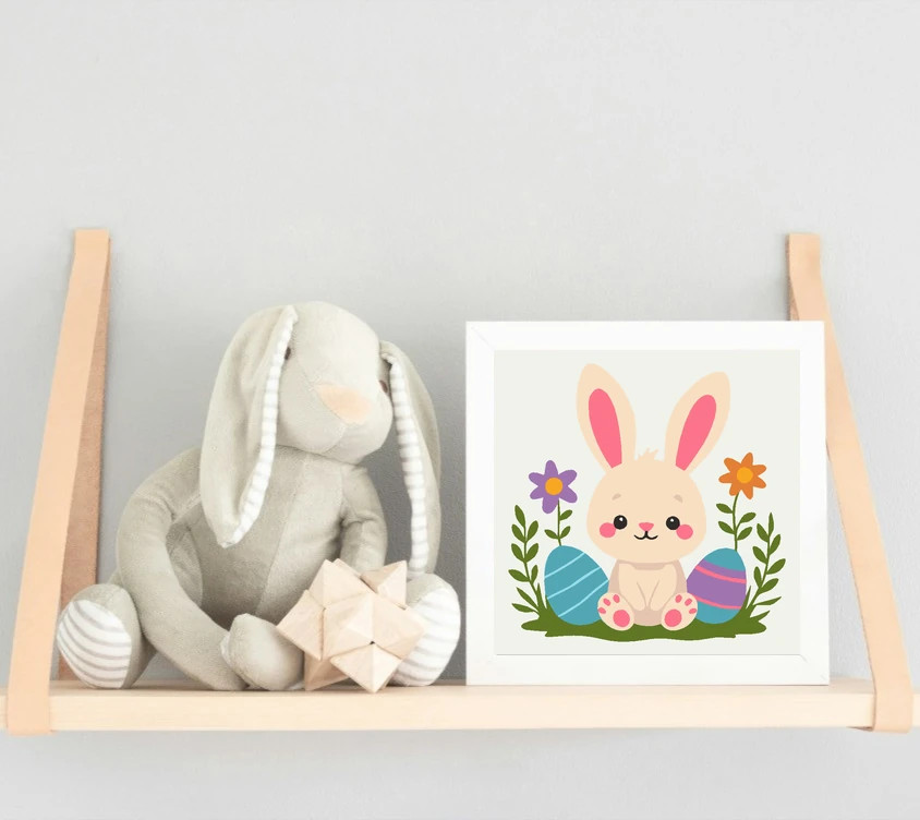 Ez a kedves nyuszi a fűben ül két húsvéti tojás között, körülötte virágokkal és levelekkel. A képen a bézs, rózsaszín, zöld és kék színek dominálnak. Vidám, tavaszias kép kis alkotóknak! Engedd szabadjára a kreativitásodat, és alkoss egy különleges műalkotást, amely otthonod dísze lehet de egyedi ajándékként is kiváló. A számfestő készletben minden szükséges eszközt megtalálsz a tökéletes végeredményhez.