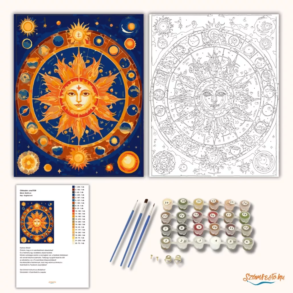 Nap - Sugárzó erő - számfestő készlet – 50×60 cm (Keretre feszítve)