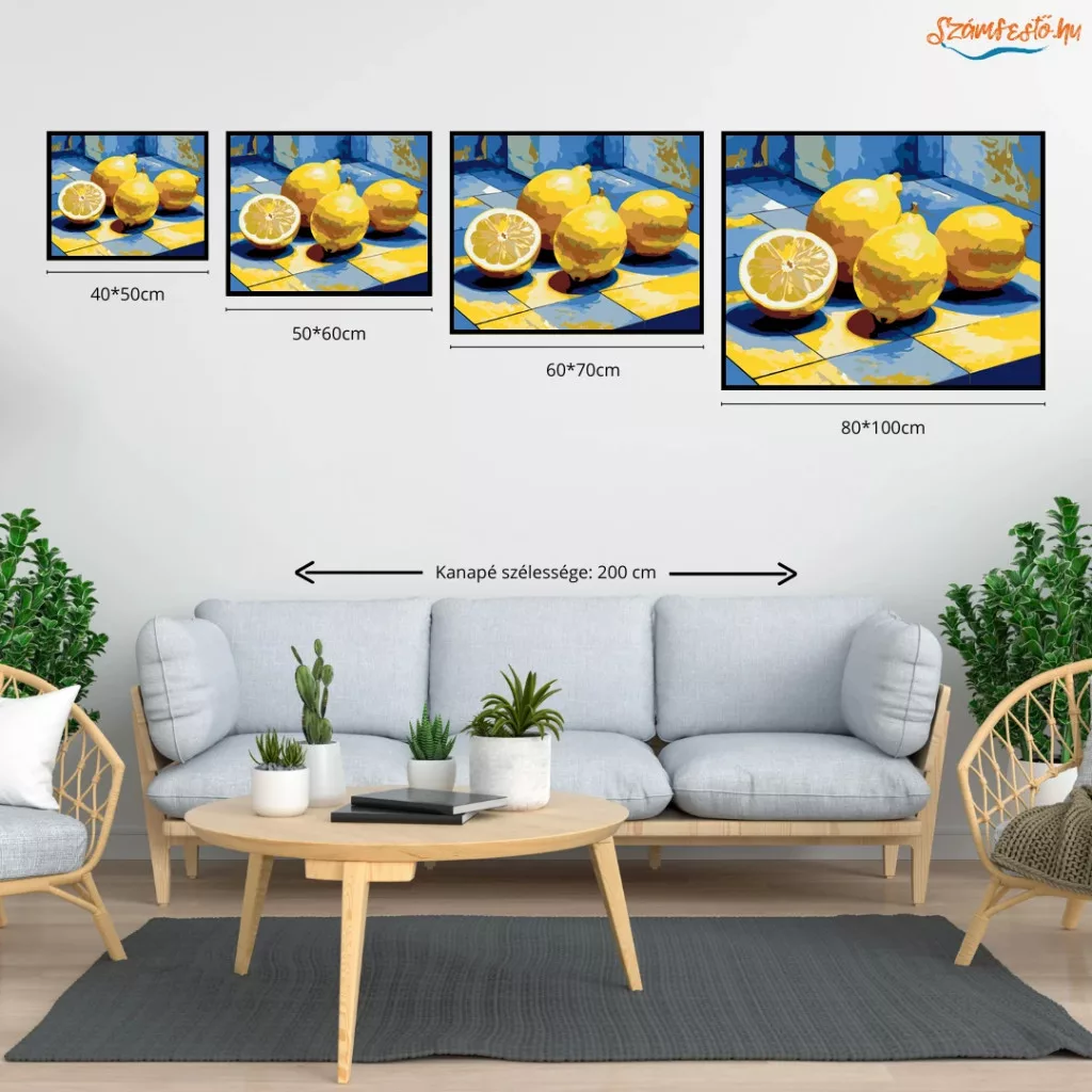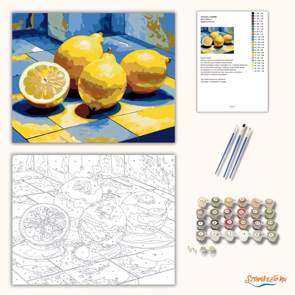 Napfényes citromok - számfestő készlet - Számfestő.hu - 40×50cm - Keret nélkül
