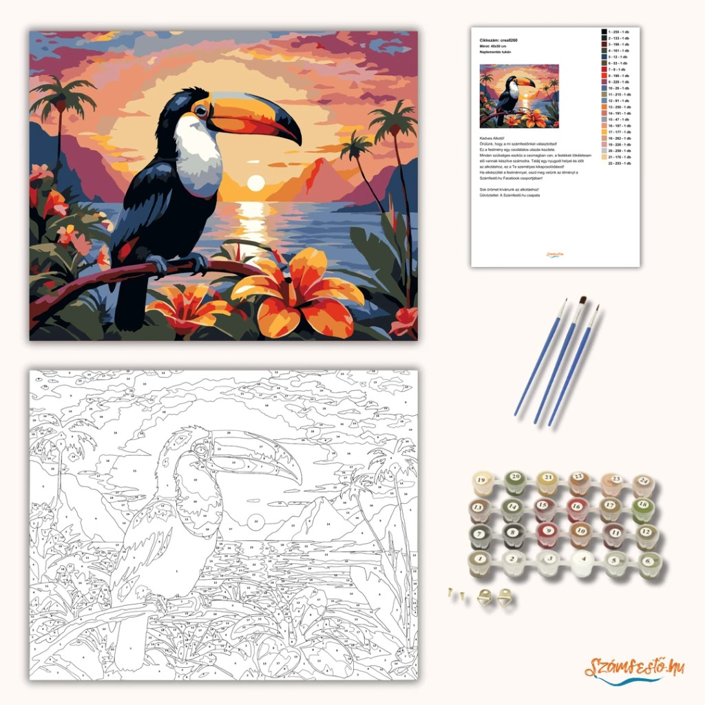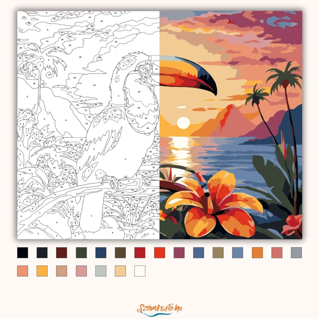 Naplementés tukán - számfestő készlet – 50×60 cm (Keretre feszítve)