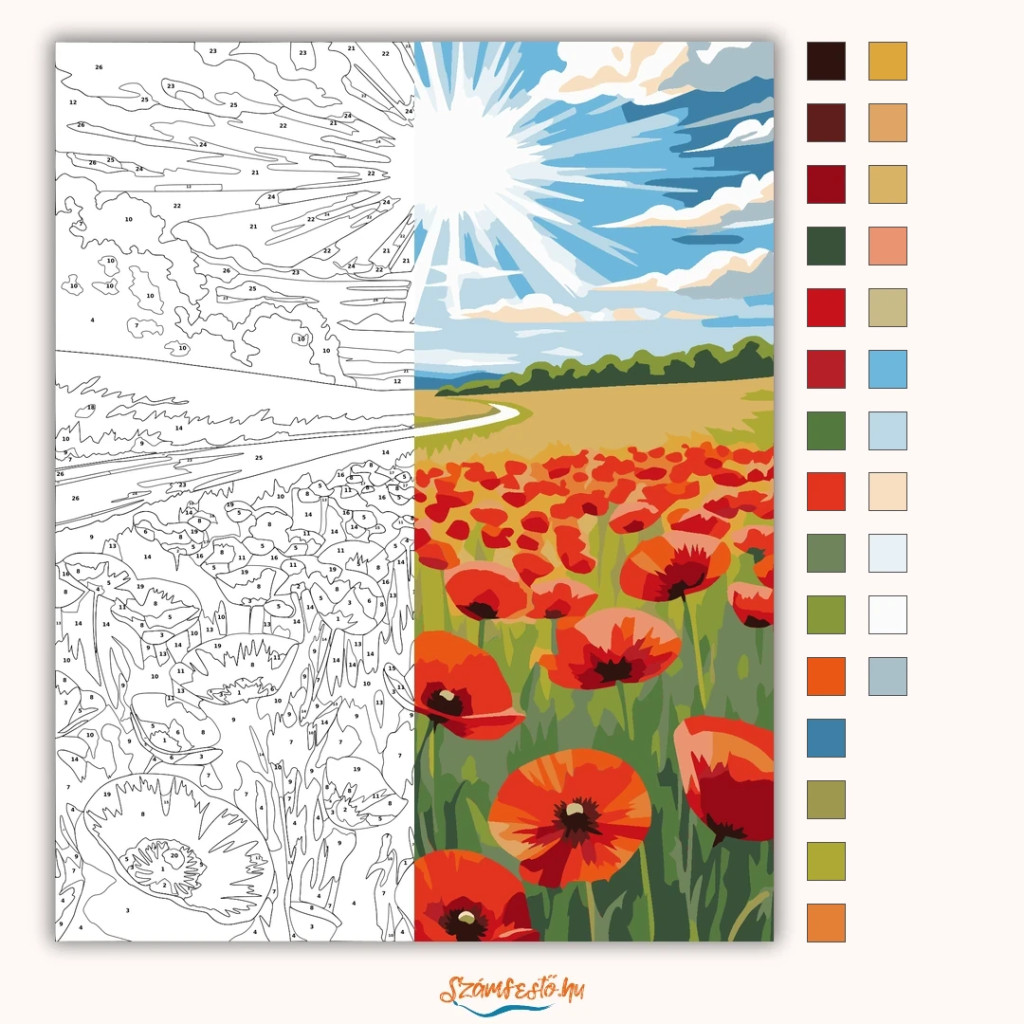 Napsugaras pipacsmező - számfestő készlet – 50×60 cm (Keret nélkül)