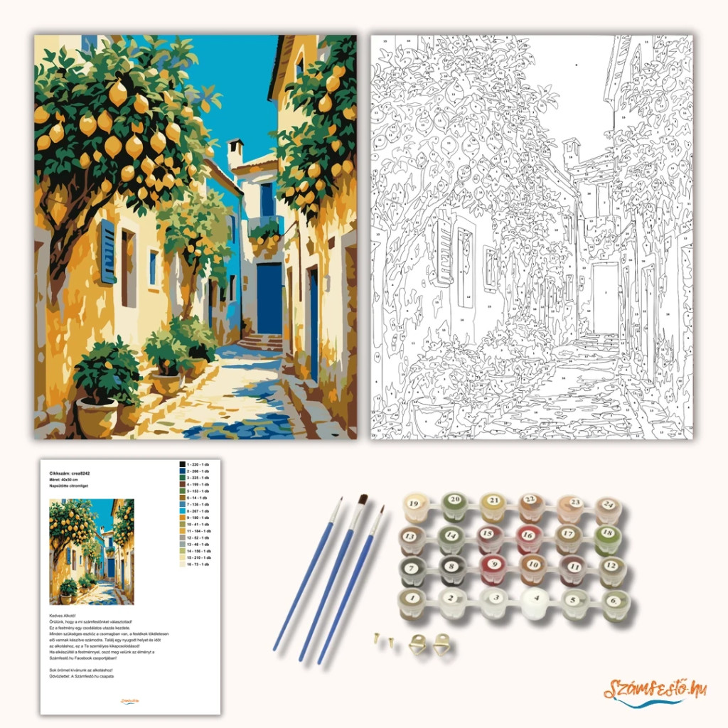 Napsütötte citromliget - számfestő készlet – 40×50 cm (Keretre feszítve)