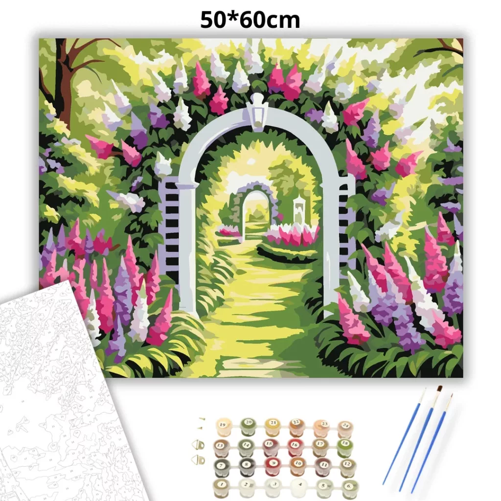 Napsütötte kerti boltív - számfestő készlet - Számfestő.hu - 50×60cm - Keret nélkül