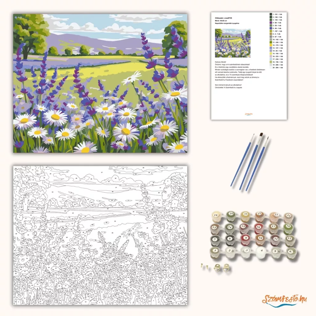 Napsütötte margaréták nyugalma - számfestő készlet – 40×50 cm (Keretre feszítve)