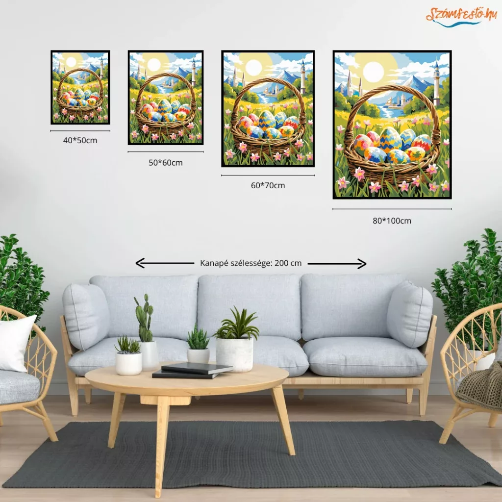 Napsütötte tojás kosár - számfestő készlet - Számfestő.hu - 60×70cm - Keretre feszítve