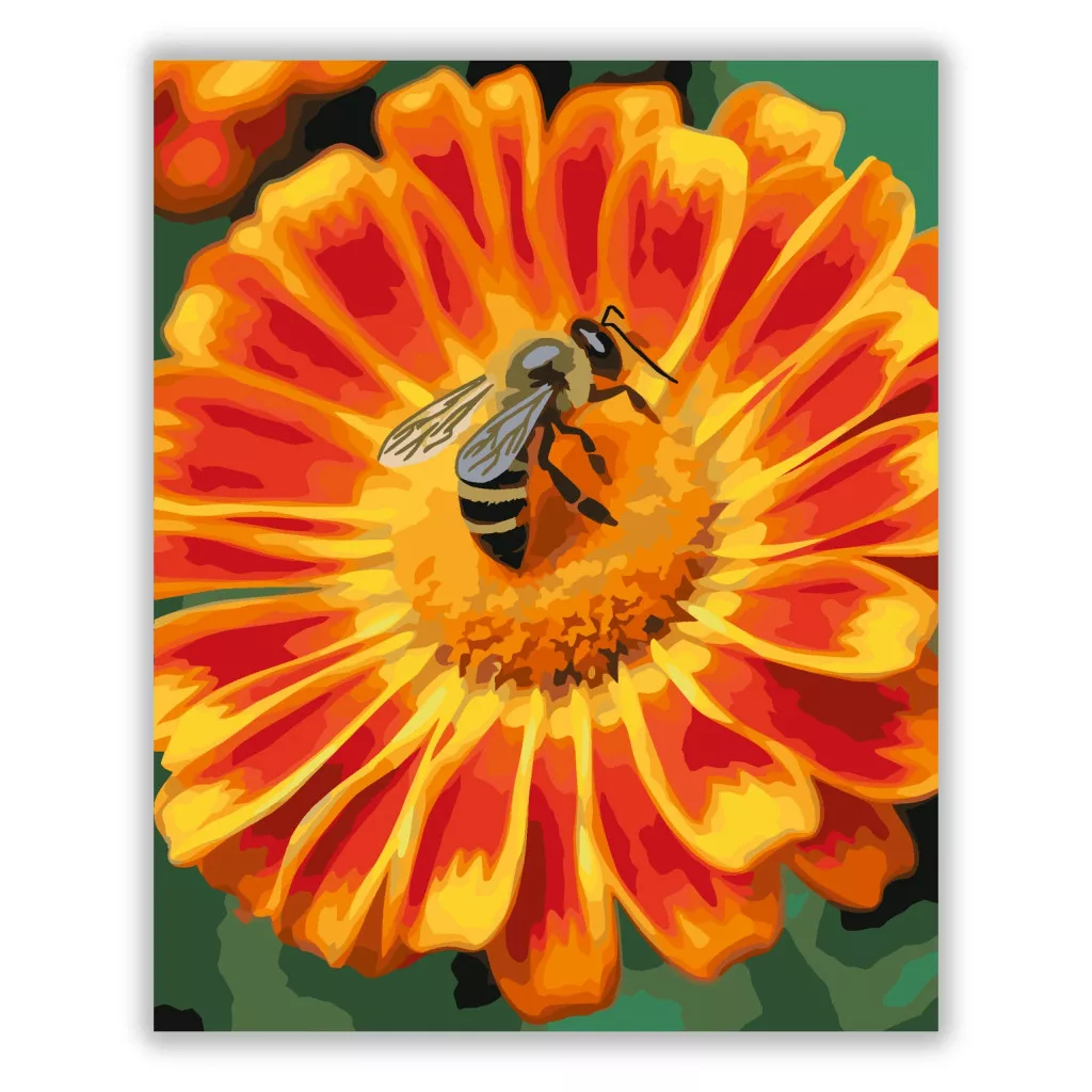 A képen egy méh látható, ahogy egy nyíló bársonyvirág közepébe bújik. A sziromlevelek élénk, napfényes árnyalatai és a közeli nézet friss, tavaszi hangulatot adnak. Látványos, természetközeli kép, amely azonnal odavonzza a tekintetet. Engedd szabadjára a kreativitásodat, és alkoss egy különleges műalkotást, amely otthonod dísze lehet de egyedi ajándékként is kiváló. A számfestő készletben minden szükséges eszközt megtalálsz a tökéletes végeredményhez.
