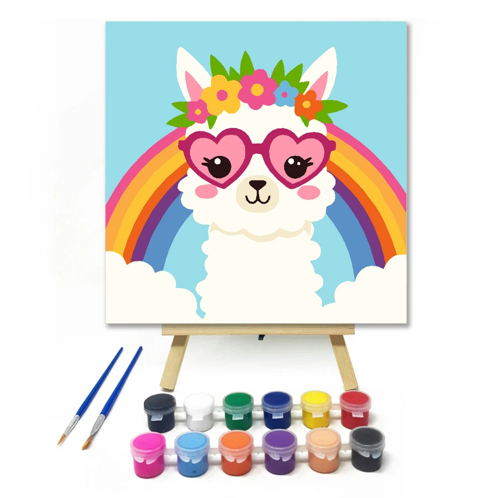 Napszemüveges lámácska - gyerek számfestő készlet – 50×50 cm (Keretre feszítve)