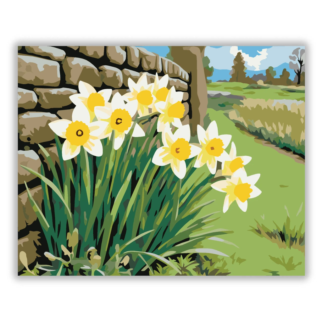 Nárciszok a kőfalnál - számfestő készlet – 40×50 cm (Keretre feszítve)