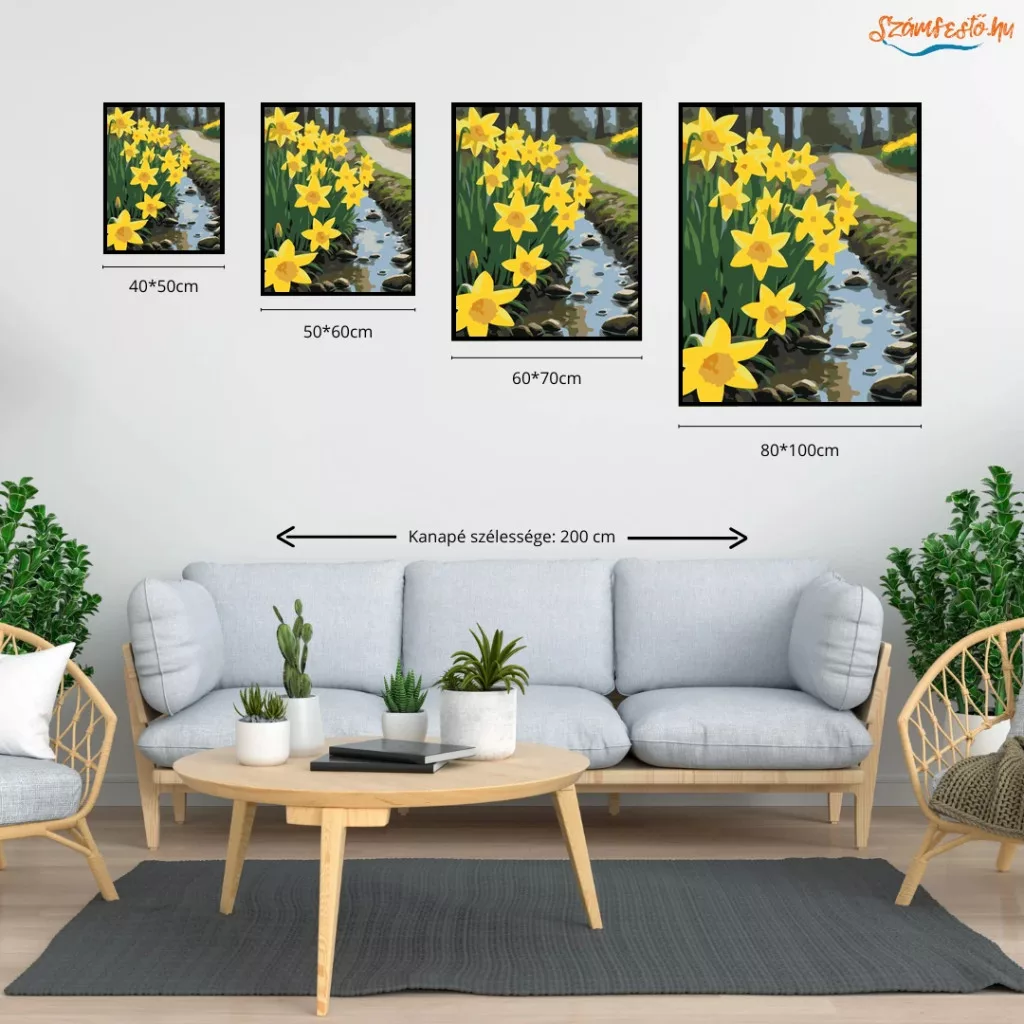 Nárciszok a patakparton - számfestő készlet - Számfestő.hu - 50×60cm - Keretre feszítve