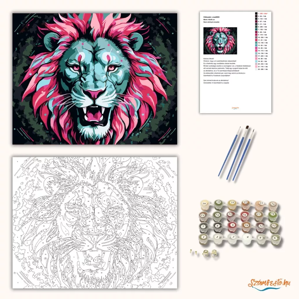 Neon sörényű oroszlán - számfestő készlet – 50×60 cm (Keret nélkül)
