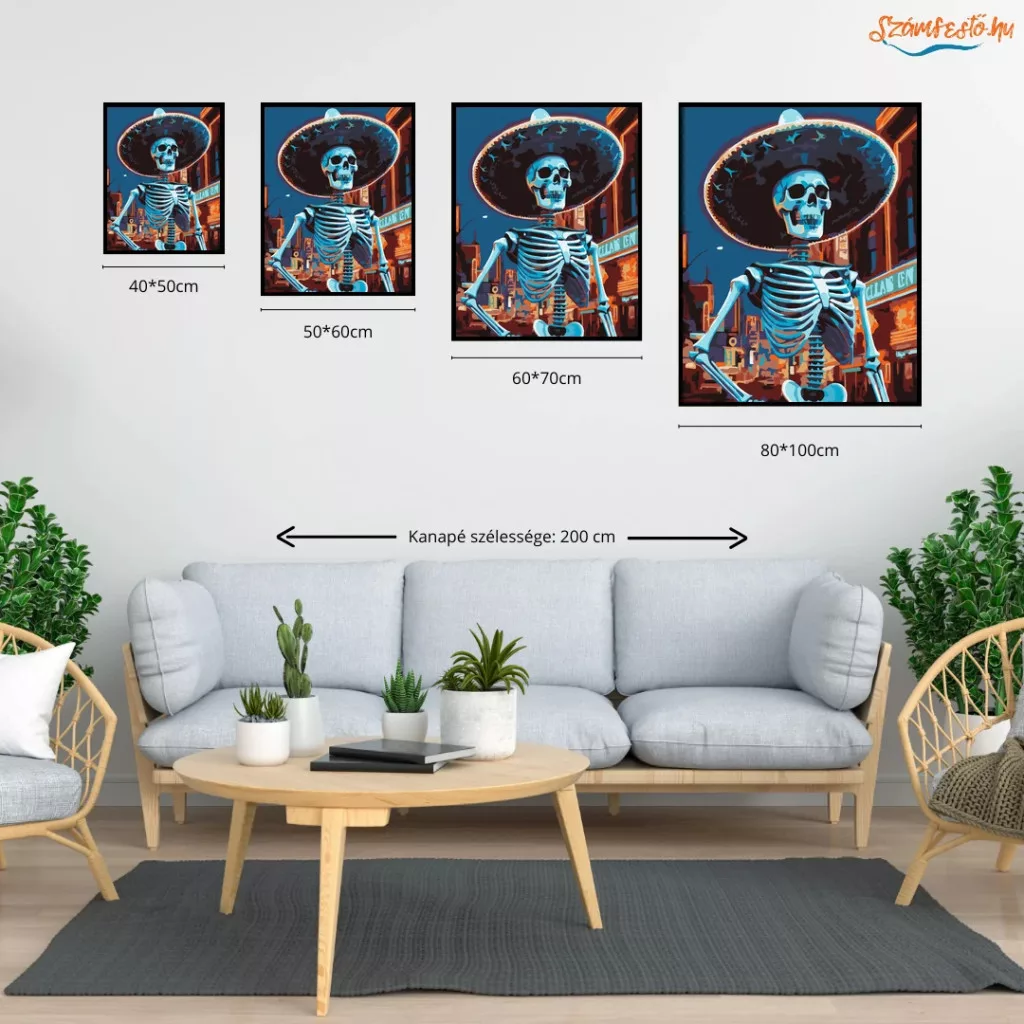 Neonvárosi csontváz - számfestő készlet - Számfestő.hu - 40×50cm - Keret nélkül