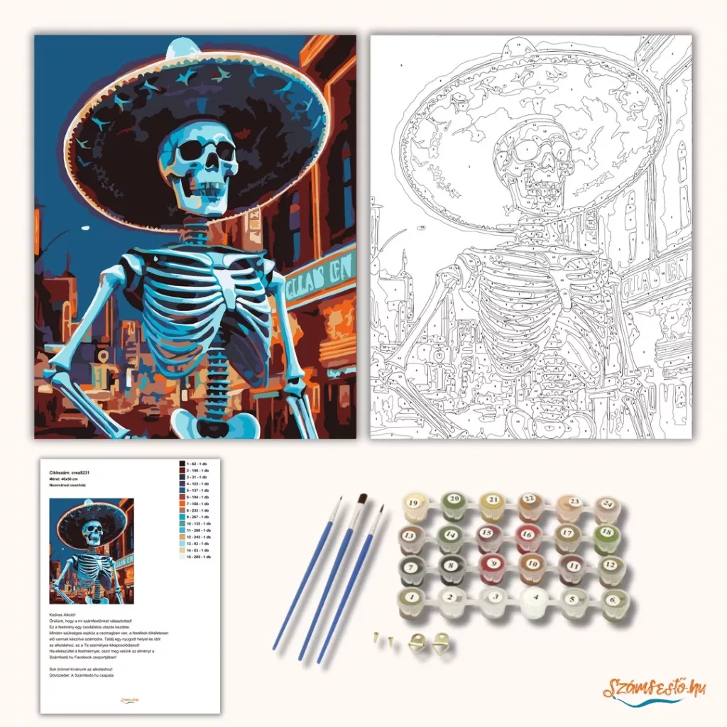 Neonvárosi csontváz - számfestő készlet - Számfestő.hu - 60×70cm - Keretre feszítve