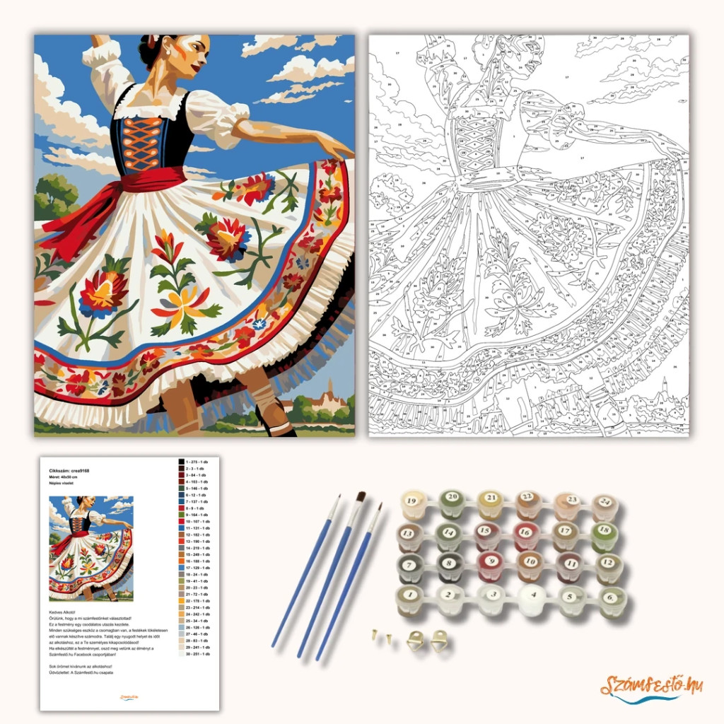Népies viselet - számfestő készlet – 40×50 cm (Keret nélkül)