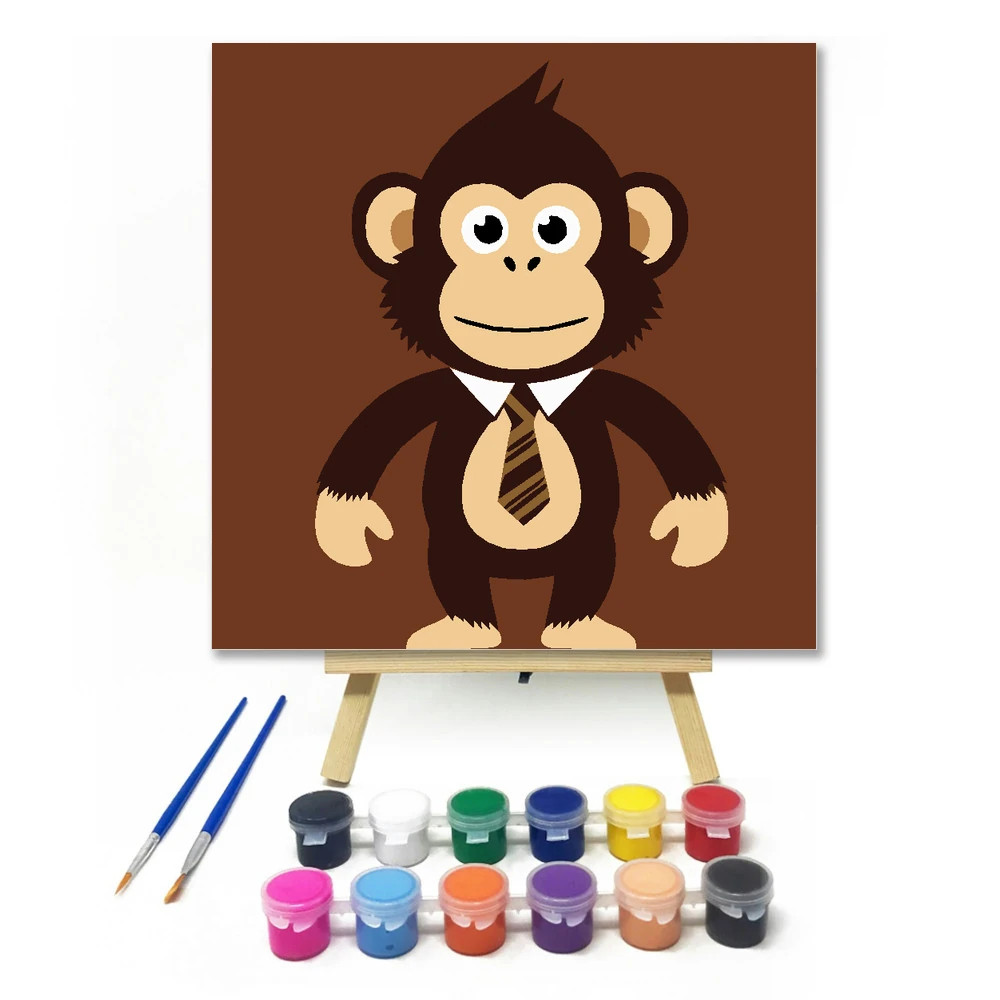 Nyakkendős makimajom - gyerek számfestő készlet – 40×40 cm (Keretre feszítve)