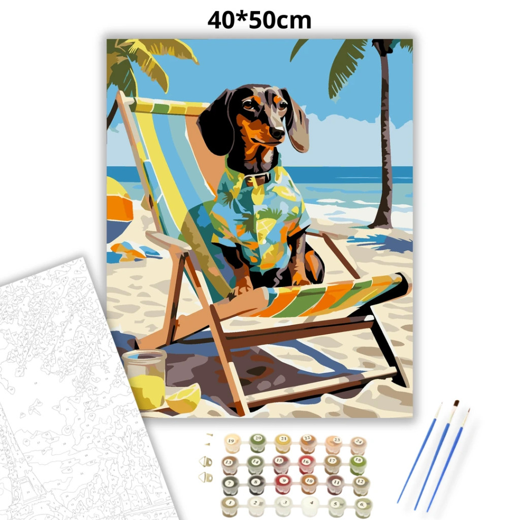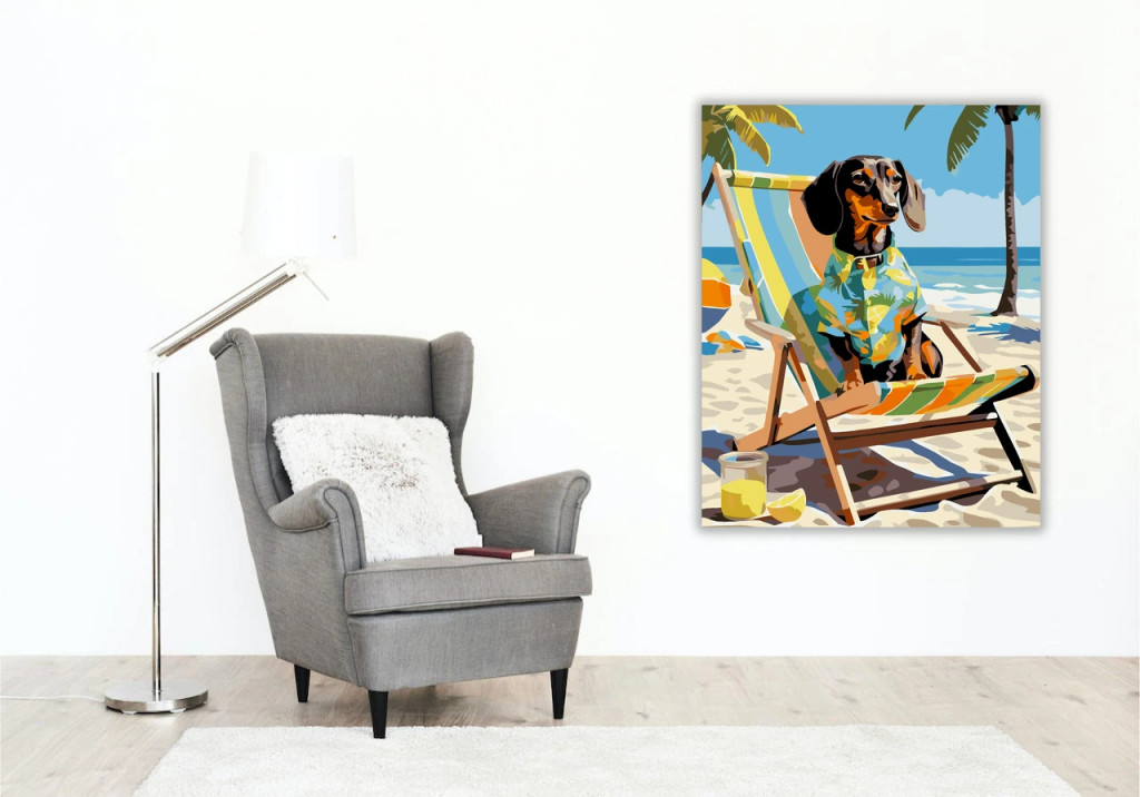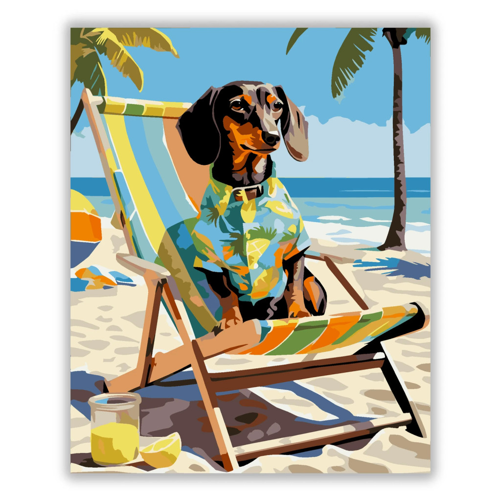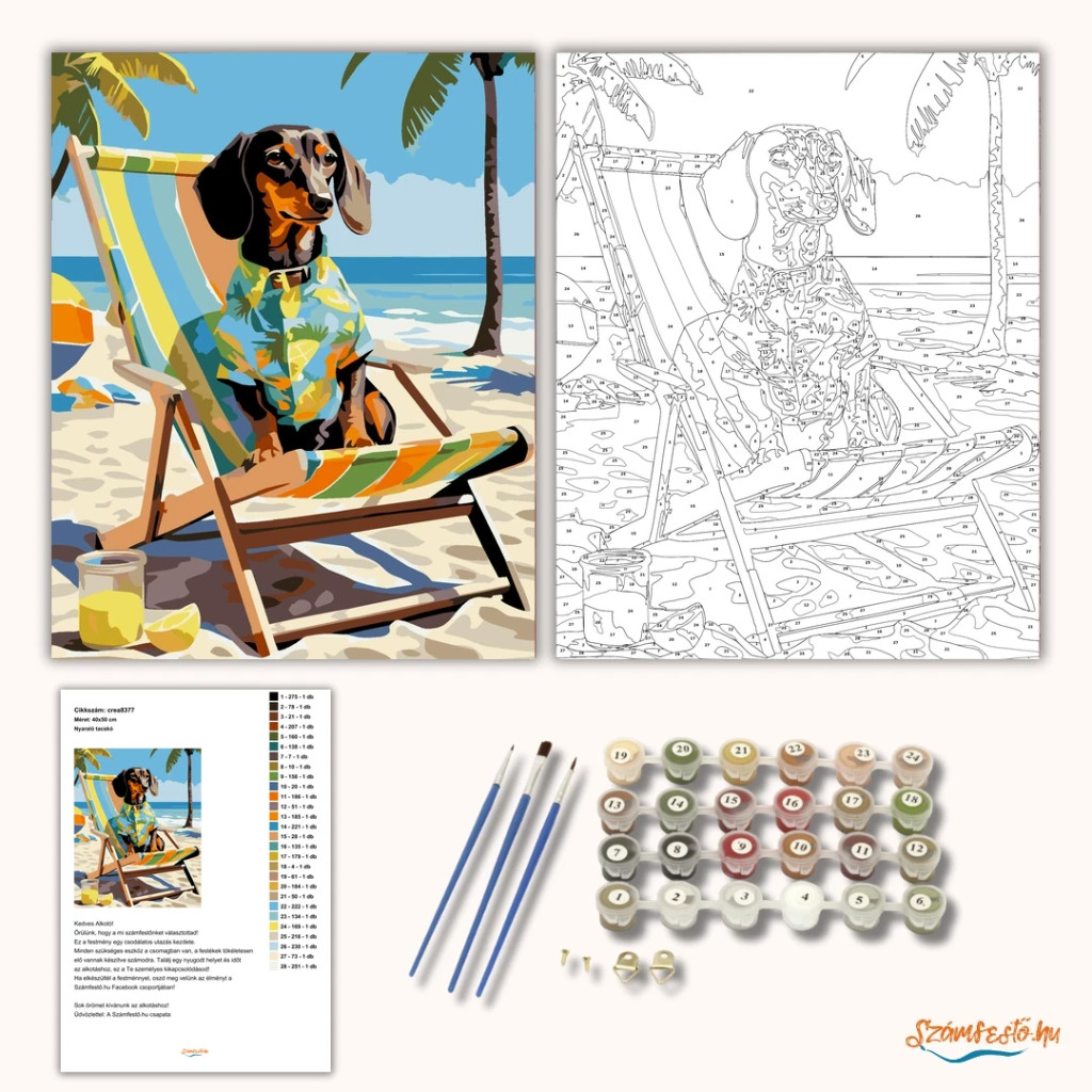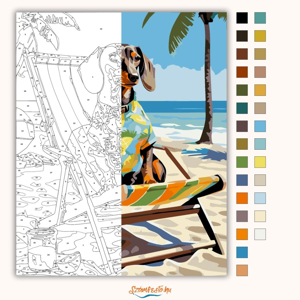 Nyaraló tacskó - számfestő készlet – 40×50 cm (Keret nélkül)