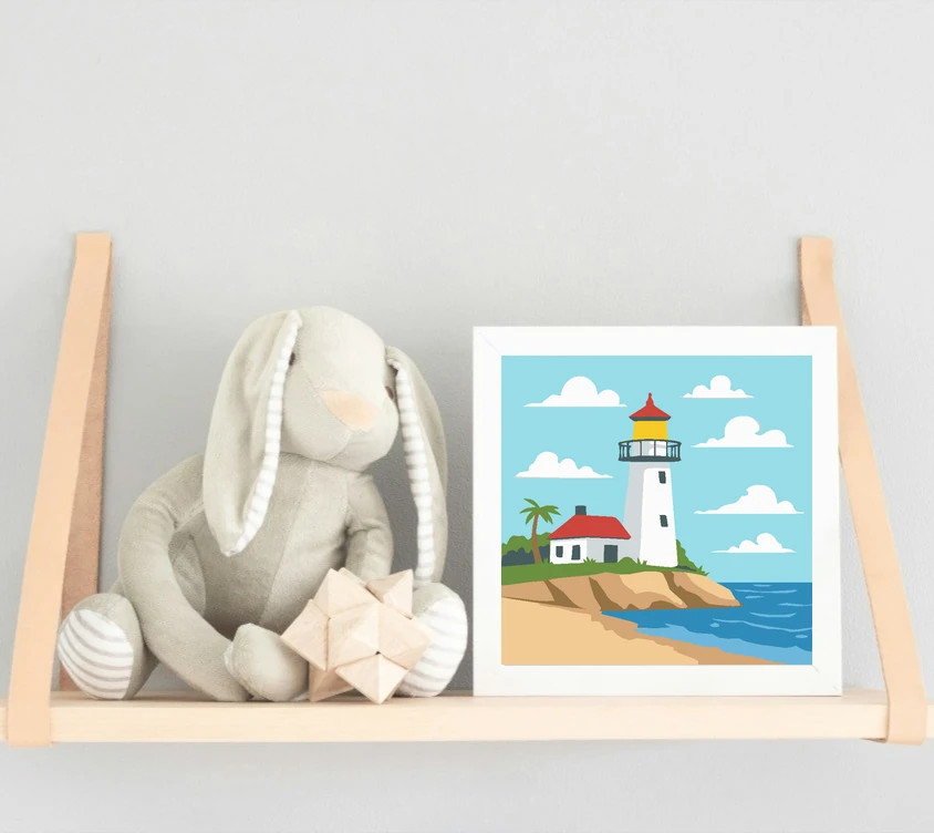 Nyári világítótorony - gyerek számfestő készlet – 50×50 cm (Keret nélkül)