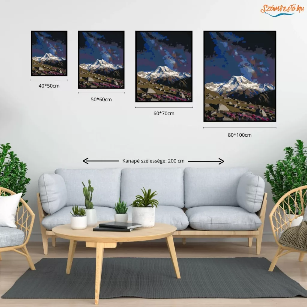 Méret, Itt tudod kiválasztani, hogy a számfestő készletet mekkora méretben szeretnéd megvásárolni. Minél nagyobb a kép, annál egyszerűbb megfesteni, mert a mezők is nagyobbak, így könnyebb a festés, mint a kisebb méreteknél. Méret :