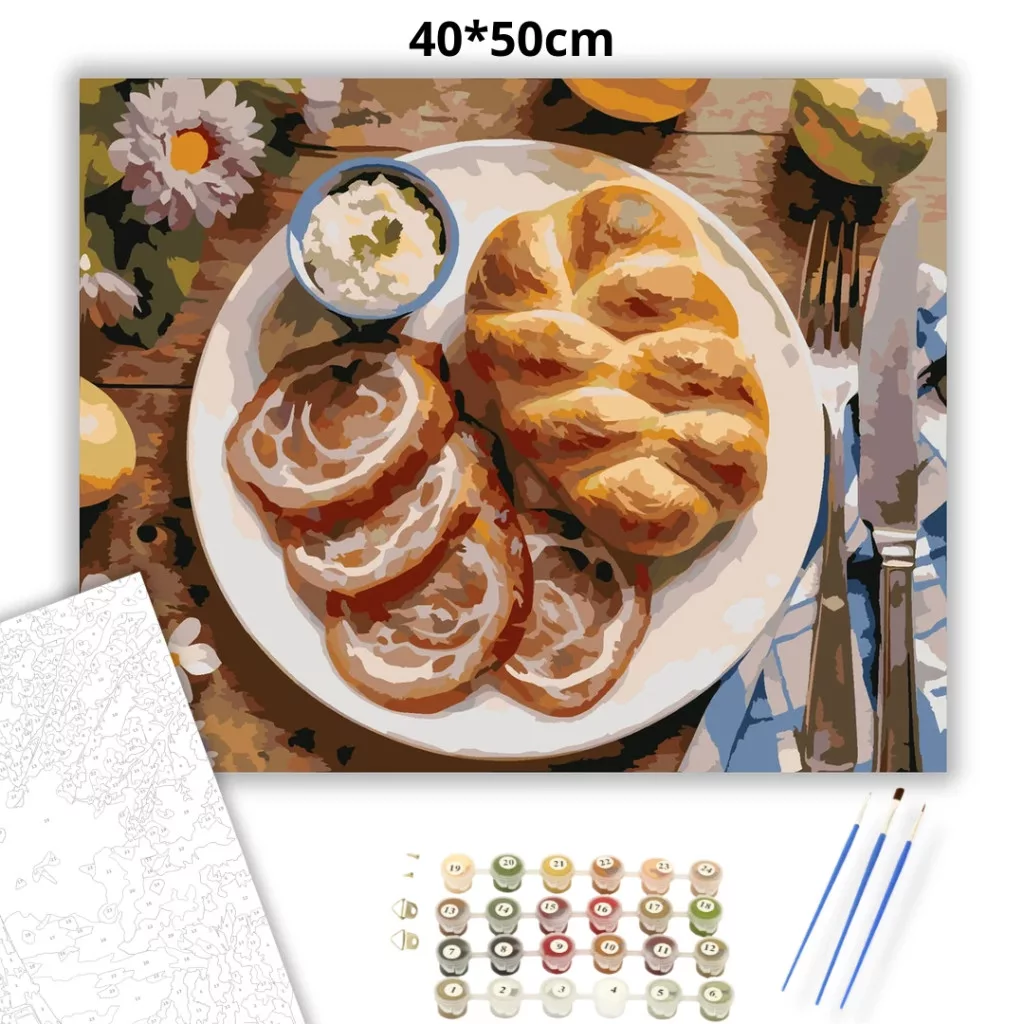 Otthonos húsvéti kalács - számfestő készlet – 40×50 cm (Keretre feszítve)