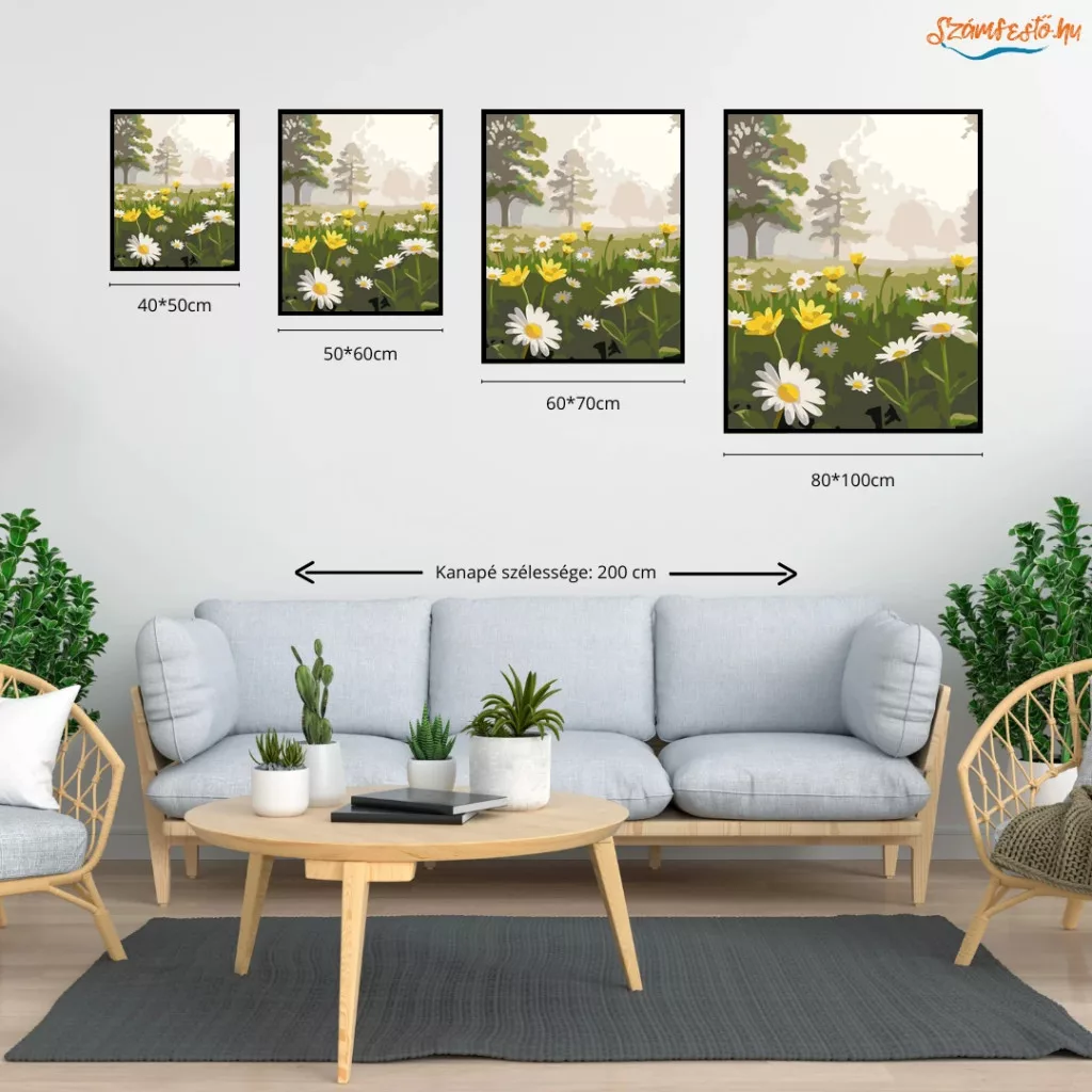 Párás vadvirágos rét - számfestő készlet - Számfestő.hu - 80×100cm - Keret nélkül