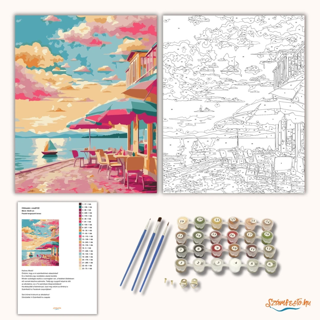 Pasztel tengerparti terasz - számfestő készlet – 40×50 cm (Keretre feszítve)