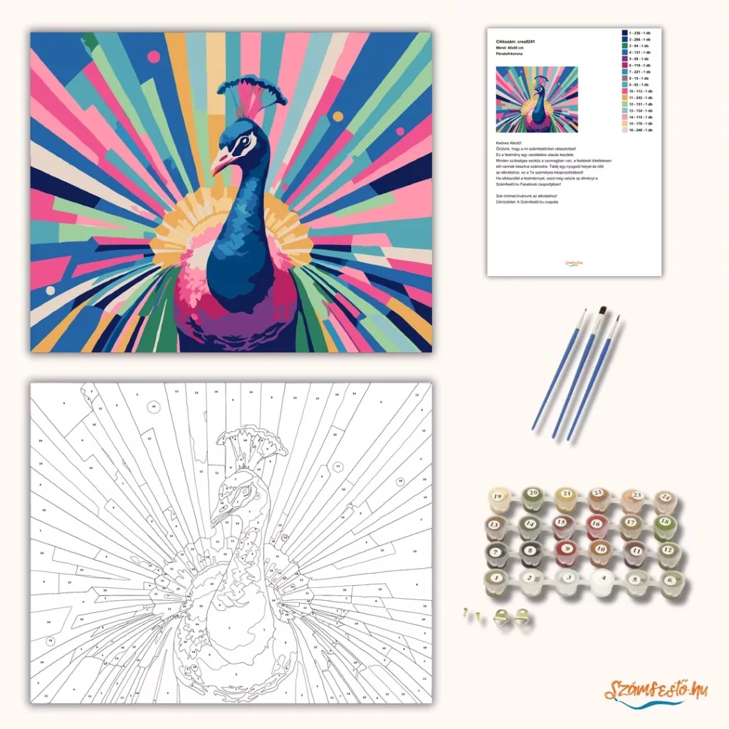 Pávatoll-korona - számfestő készlet - Számfestő.hu - 40×50cm - Keretre feszítve